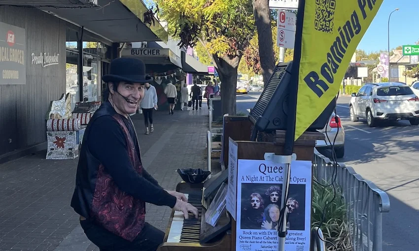 DrH brings his acoustic piano on wheels and portable sound system to the great outdoors, providing live music and entertainment for community functions, parties and general busking